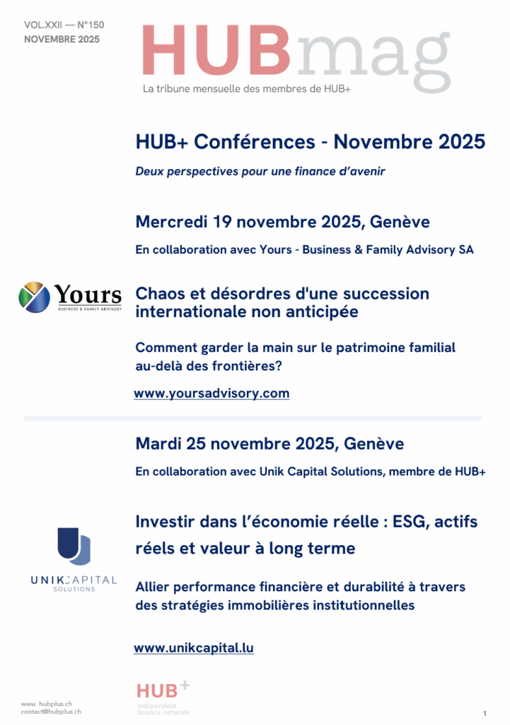 Le HUBMag est le magazine de l’association qui décrypte l’actualité financière, donne la parole aux experts et met en lumière les acteurs qui façonnent le paysage financier suisse.